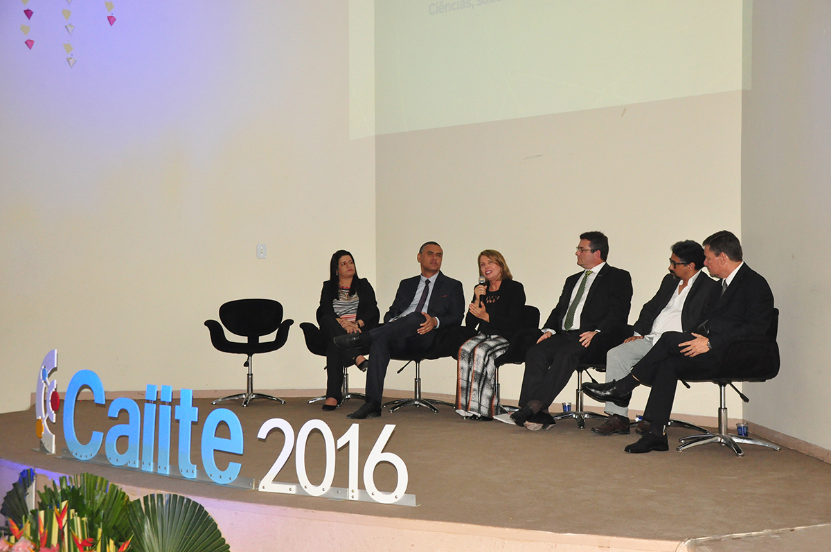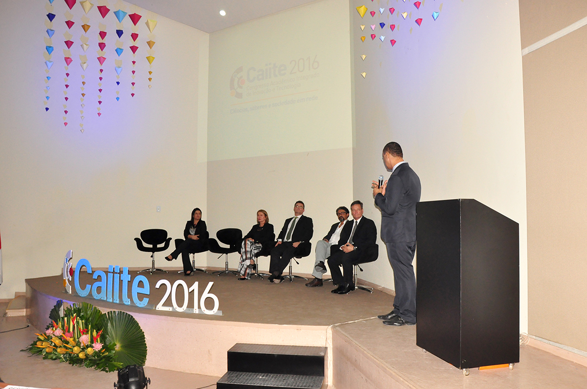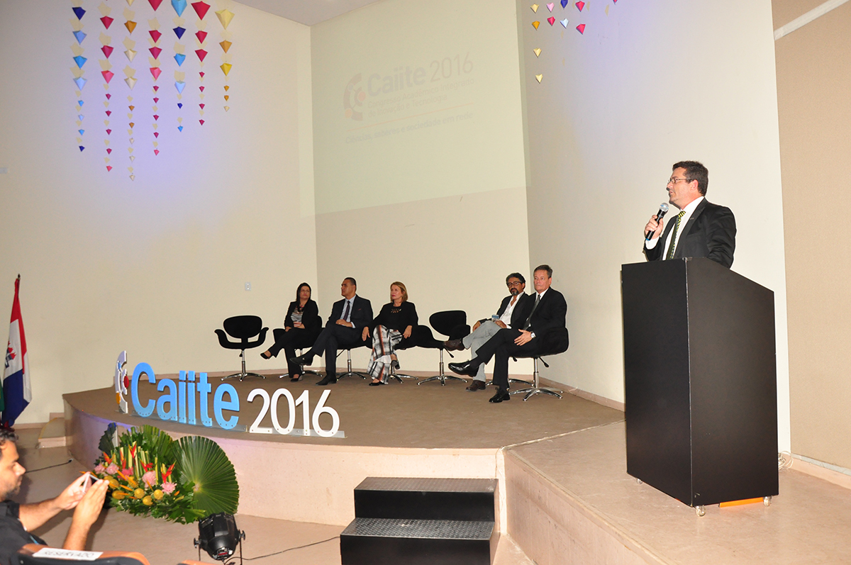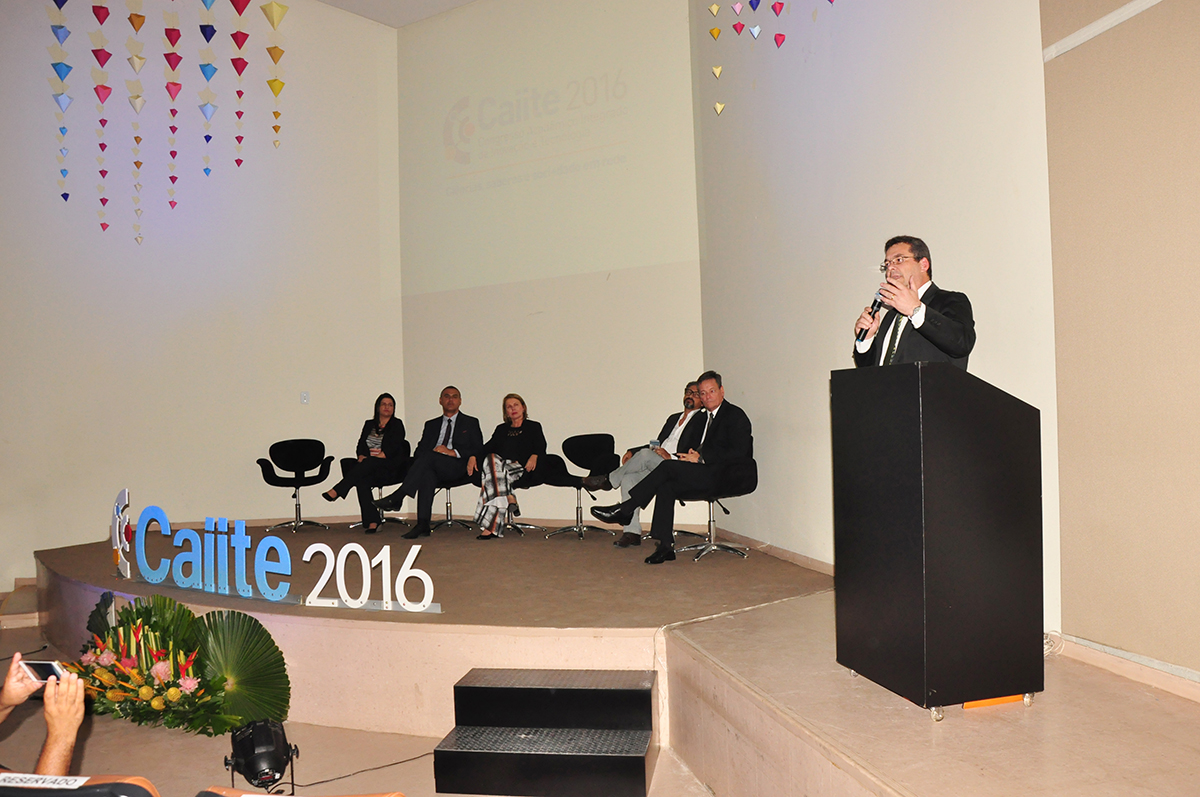 Os discursos da noite abriram oficialmente a quarta edição do Congresso Acadêmico Integrado de Inovação e Tecnologia (Caiite) e demonstraram a união de esforços para a contribuição do conhecimento em Alagoas. A reitora da Ufal, Valéria Correia, agradeceu aos parceiros e destacou o trabalho de dedicação que o vice-reitor, José Vieira, realiza como coordenador do Caiite 2016, assumindo um evento que ela classificou como “instrumento de transformação”.