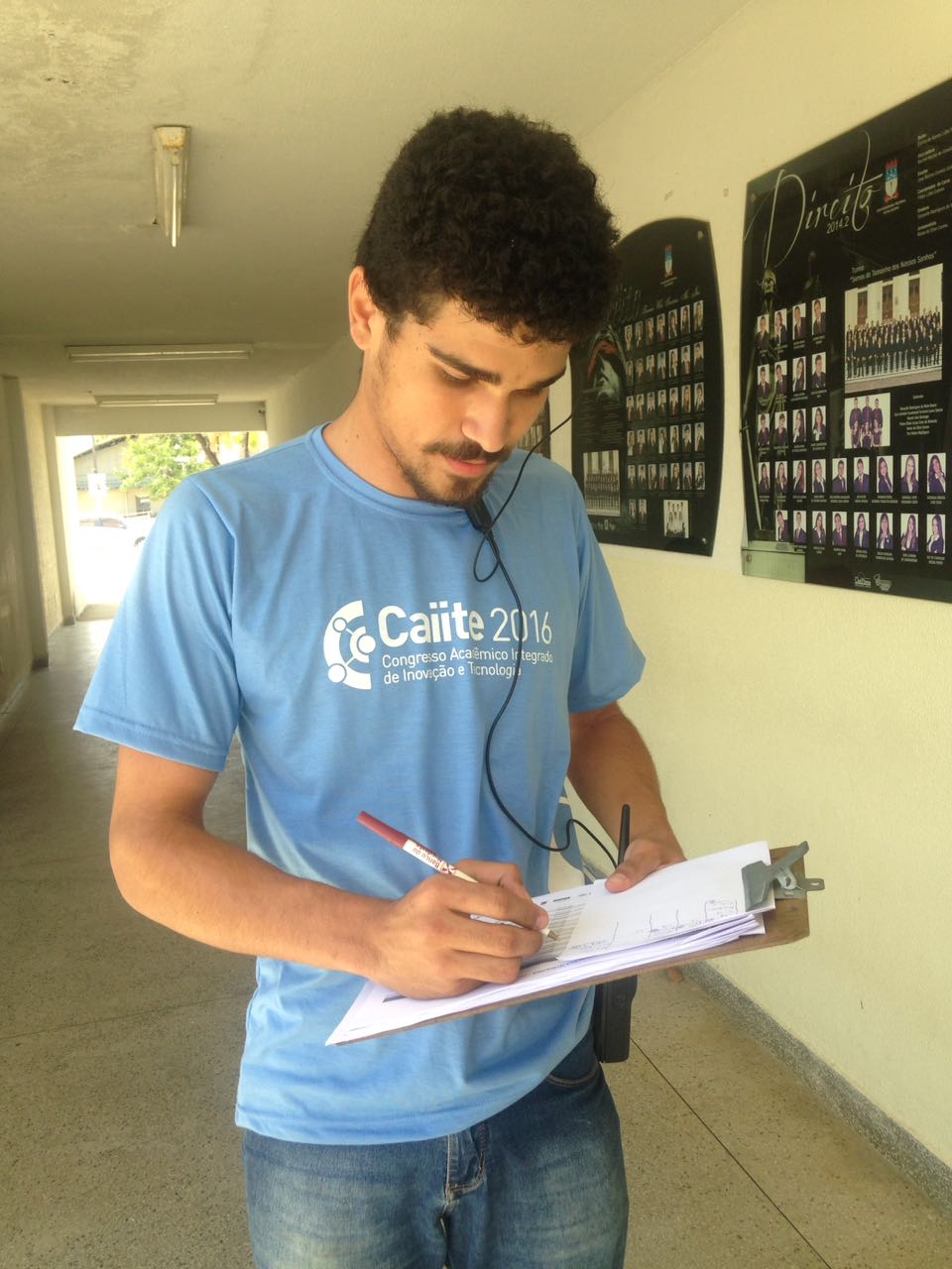 Pasta na mão, fone no ouvido e a tarefa de coordenar todos os alunos que estão à serviço do Congresso Acadêmico Integrado e Inovação e Tecnologia no prédio da Faculdade de Direito (FDA). A missão dada a Wanderson Bruno, aluno de Engenharia Civil da Ufal, está sendo cumprida com prazer.