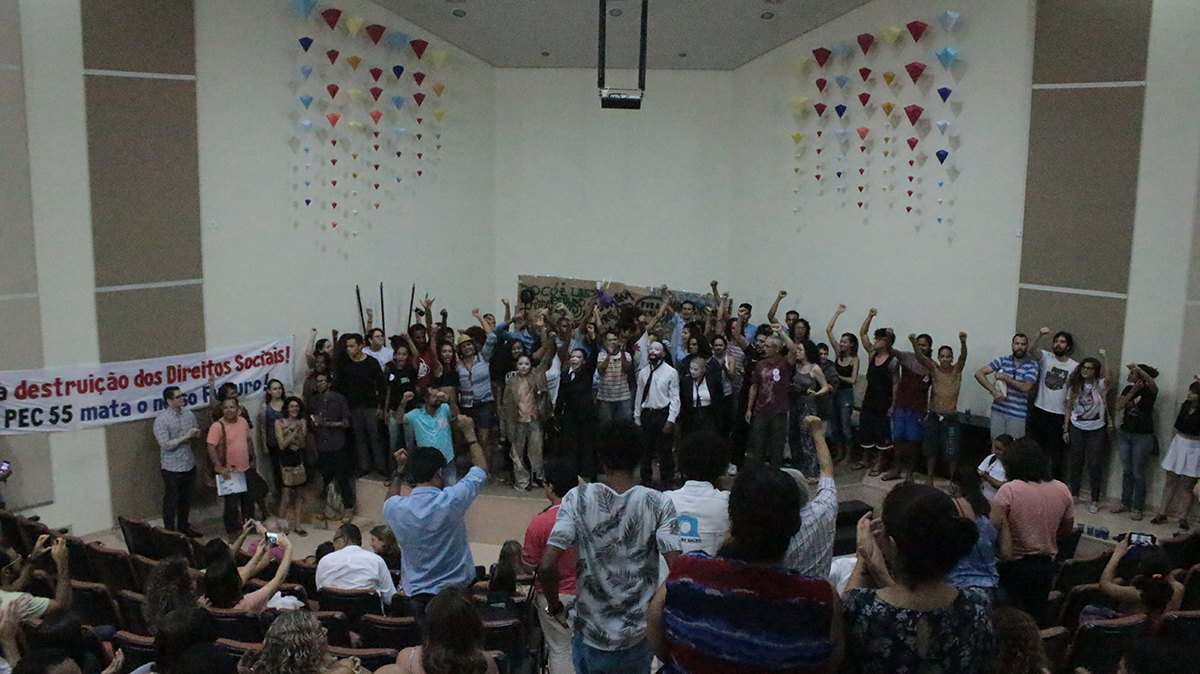 Além do professor Leher, compuseram a mesa para discussão a reitora da Ufal, Valéria Correia; o secretário geral da Associação dos Docentes da Ufal (Adufal), Jorge Oliveira; Davi Francisco, representante do Sindicato dos Trabalhadores da Ufal (Sintufal); e os estudantes Hermes Rodrigues e Thays Camila, convidados para representar o movimento das ocupações. Todos foram apresentados pela reitora e discutiram, em linhas gerais, as dificuldades enfrentadas pelas instituições de ensino do Estado atualmente.